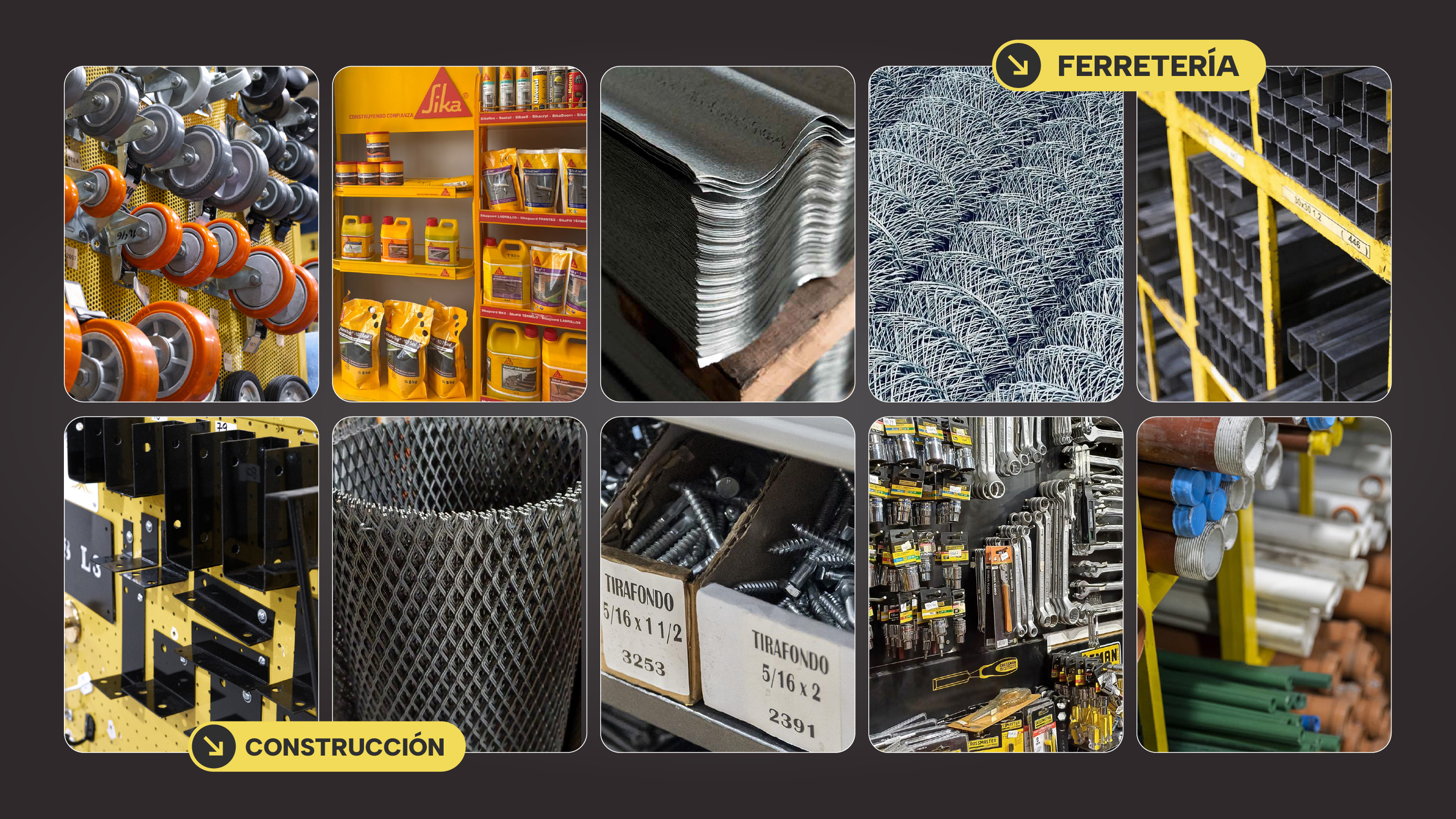 En nuestros locales encontrás todo para tu obra o proyecto: chapas lisas, acanaladas, Cincalum y perforadas; tubos estructurales y perfilería; mallas, metal desplegado y accesorios para cercos.